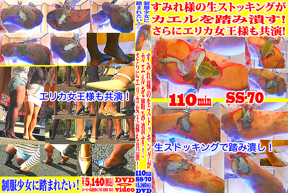 生ストッキングで踏み潰す「すみれ様」が再び登場!今度は「カエル」の踏み潰し!カエルの体は頑丈で生ストッキングの踏みにじりではなかなか死なない!よってさんざん踏まれた後でもまだ生きていてピクピク動く!それを執拗に踏みにじりグチャグチャの死骸に変える!屋外撮影ではエリカ女王様と共演!2人がかりでの踏み潰しが!2時間近い110分という大ボリューム! ※本編顔出し (もっと見る